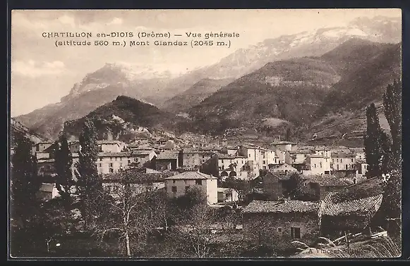AK Chatillon-en-Diois, Vue générale avec le Mont Glandaz en arrière-plan, altitude 560 m