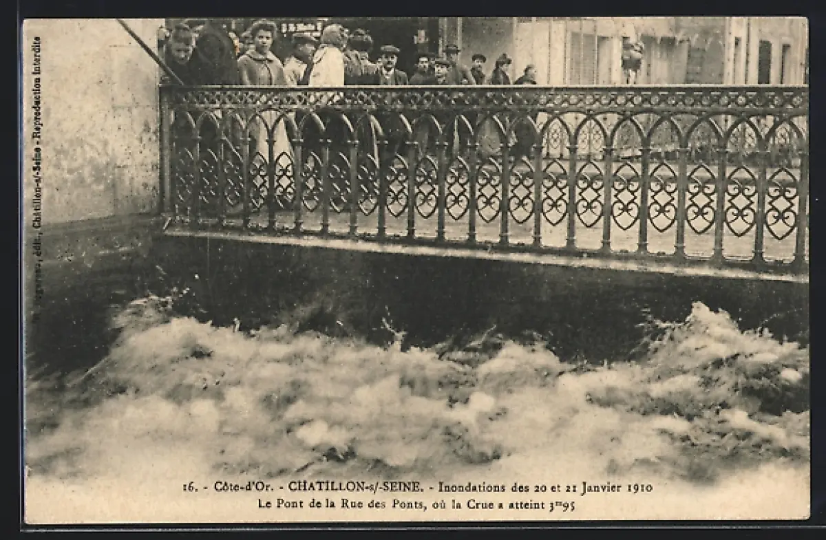 AK Chatillon-s /-Seine, Inondations des 20 et 21 Janvier 1910 - Le Pont de la Rue des Ponts..., Hochwasser