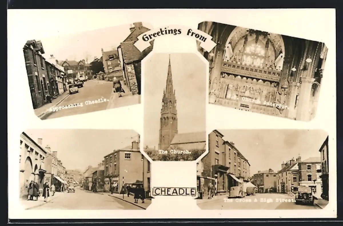 AK Cheadle, The Church, The Cross and High Street, R. C. Church Interior