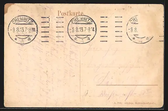 alte Ansichtskarte, gelaufen 1913, Briefmarke entfernt, Stempelspur, guter Zustand