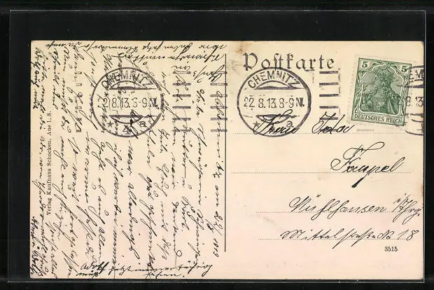 alte Ansichtskarte, gelaufen 1913, Stempelspur, guter Zustand