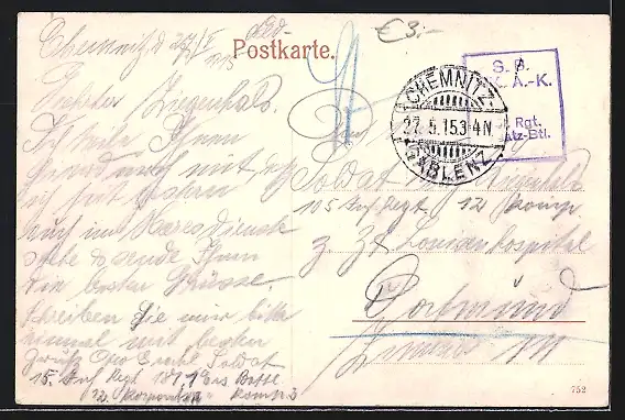 alte Ansichtskarte, gelaufen 1915, Eckknick re. oben, minimaler Einriss re. oben, guter Zustand