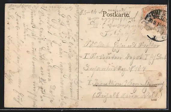 alte Ansichtskarte, gelaufen, Briefmarke entfernt, guter Zustand