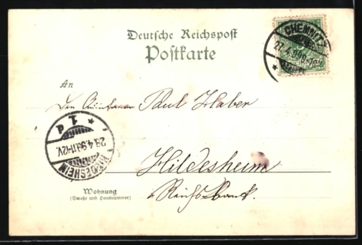alte Ansichtskarte, gelaufen 1899, Eckknick li. oben, guter Zustand