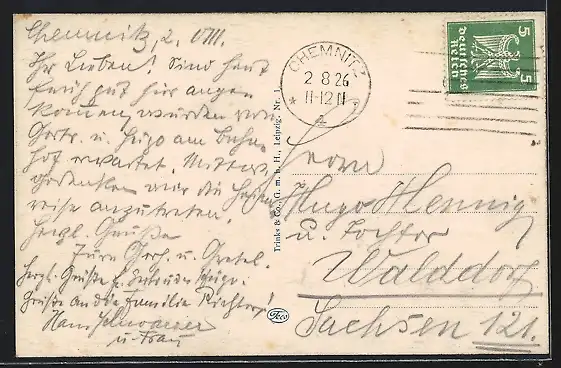 alte Ansichtskarte, gelaufen 1926, guter Zustand