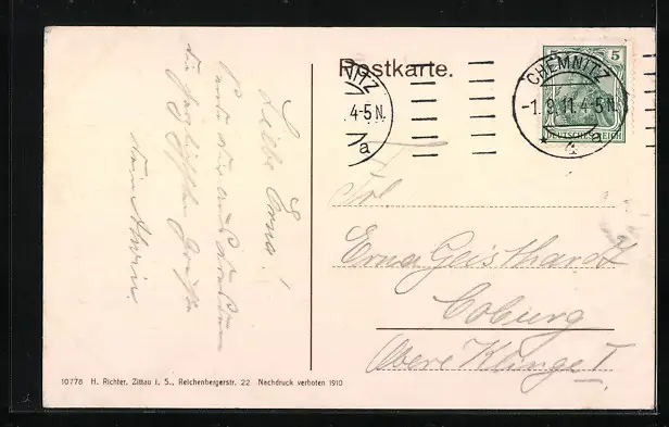 alte Ansichtskarte, gelaufen 1911, Stempelspur, guter Zustand