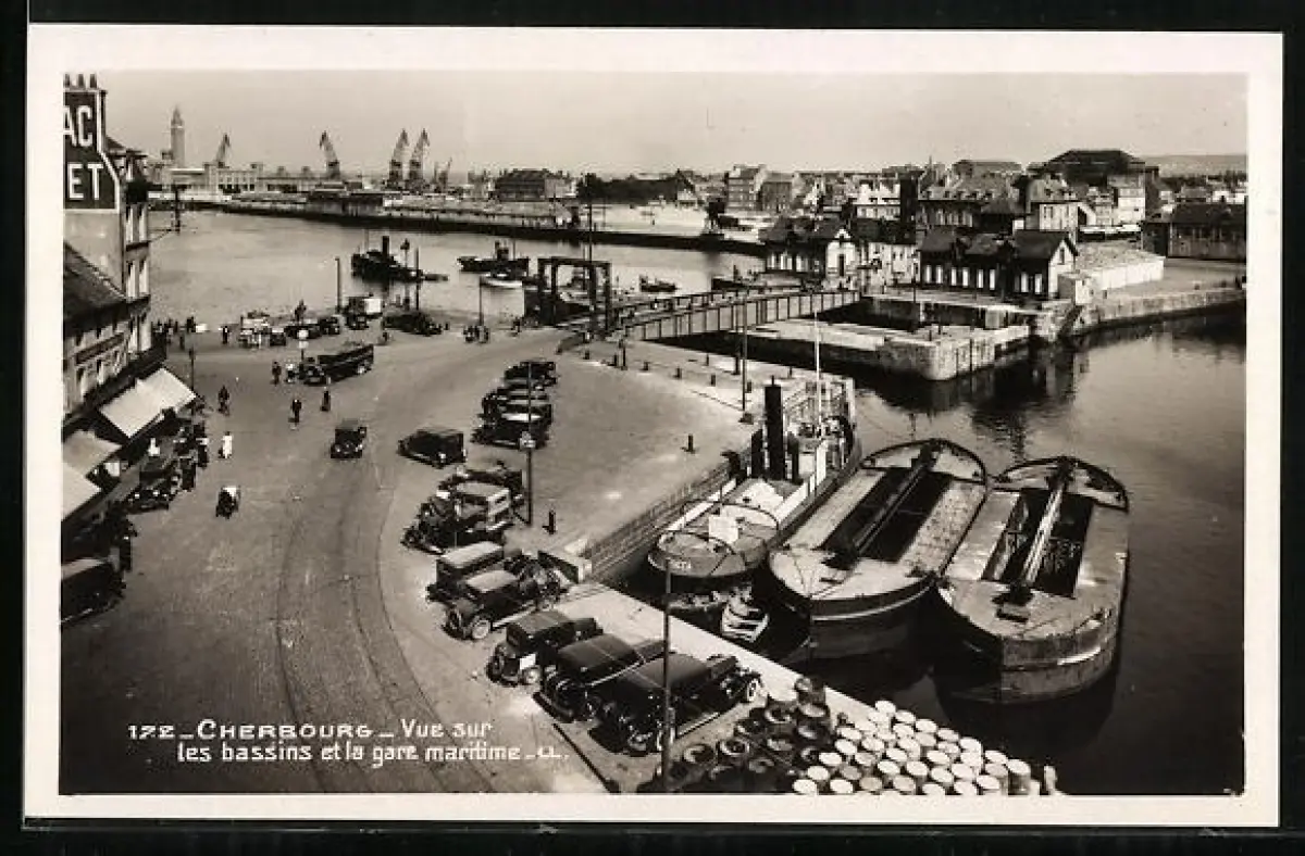 AK Cherbourg, Vue sur les bassins et la Gare maritime, Partie am Hafen