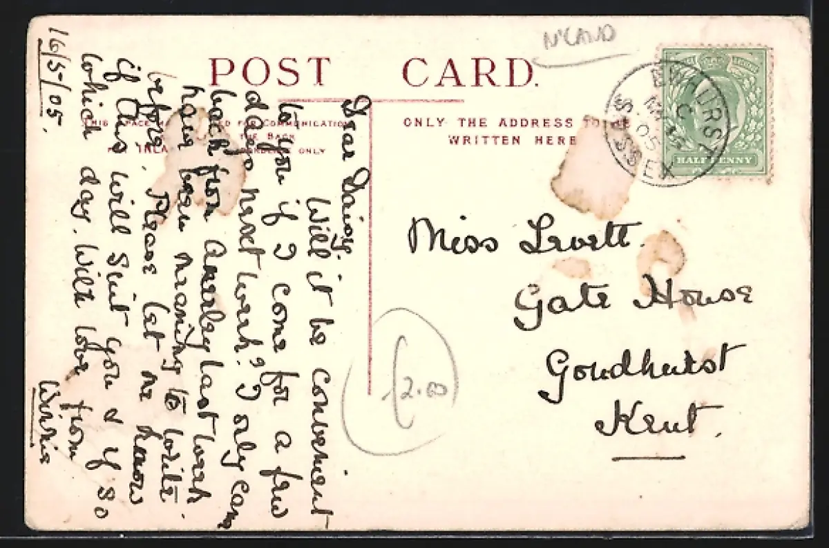 alte Ansichtskarte, gelaufen 1905, guter Zustand
