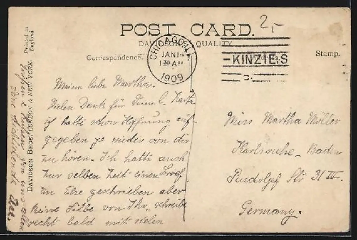 alte Ansichtskarte, gelaufen 1909, Briefmarke entfernt, guter Zustand