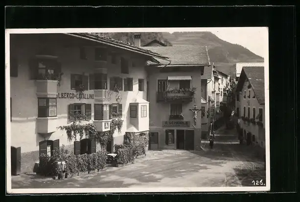 AK Chiusa d`Isarco, Strassenpartie mit Albergo Ai Cavallino und Scheidler Manifatture