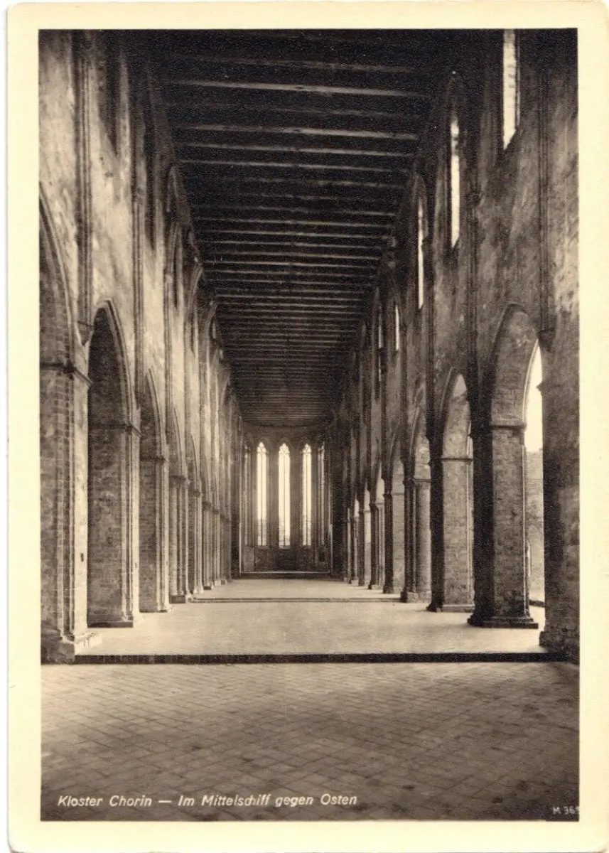 AK, Chorin Mark, Kloster, Mittelschiff gen Osten, 1956