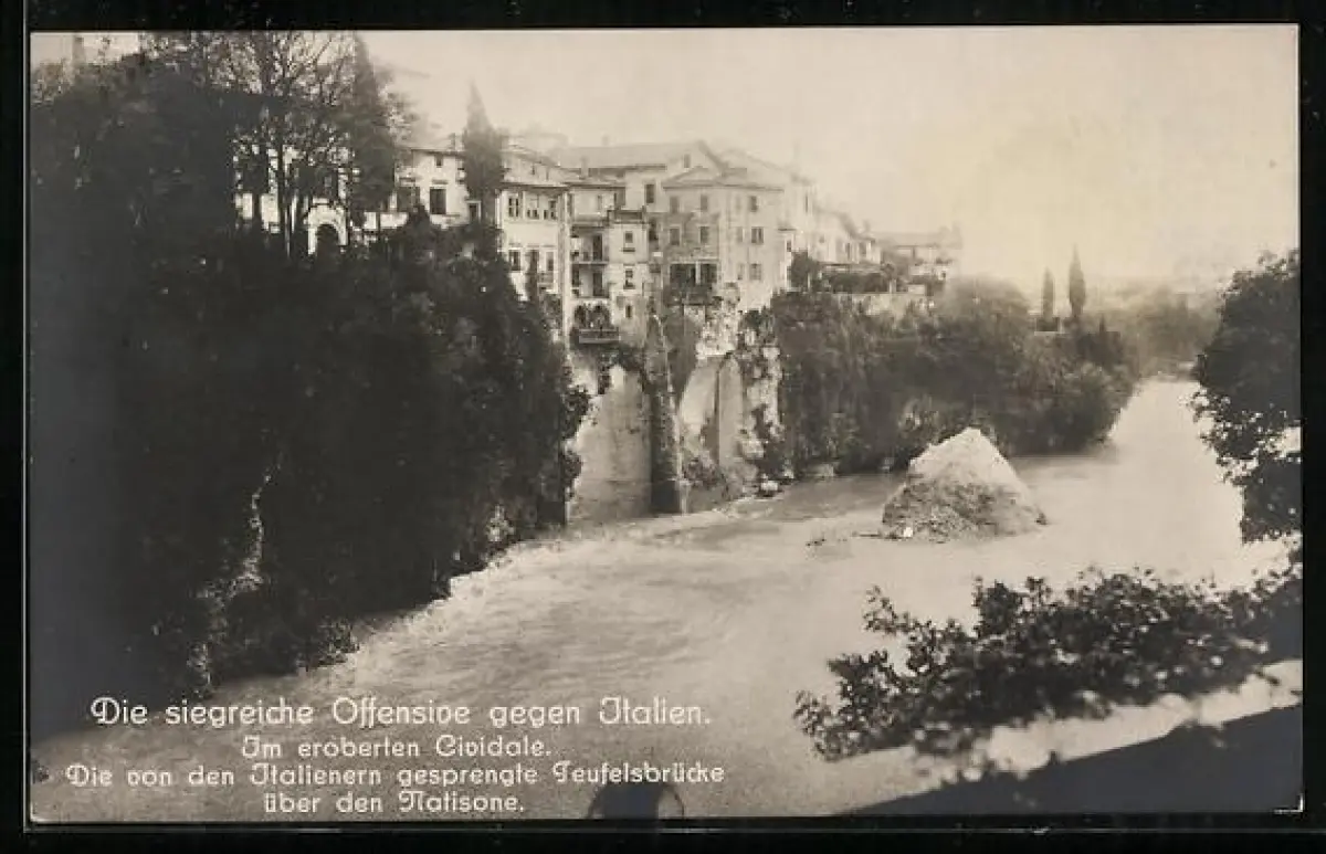 AK Cividale, Die gesprengte Teufelsbrücke über den Natisone