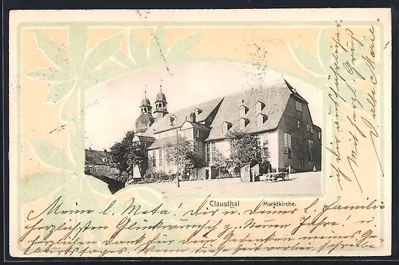 AK Clausthal, Blick auf die Marktkirche im Passepartout