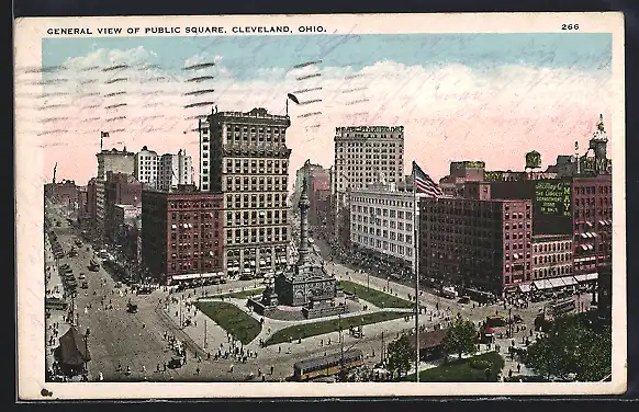 AK Cleveland, OH, General View of Public Square, Strassenbahn