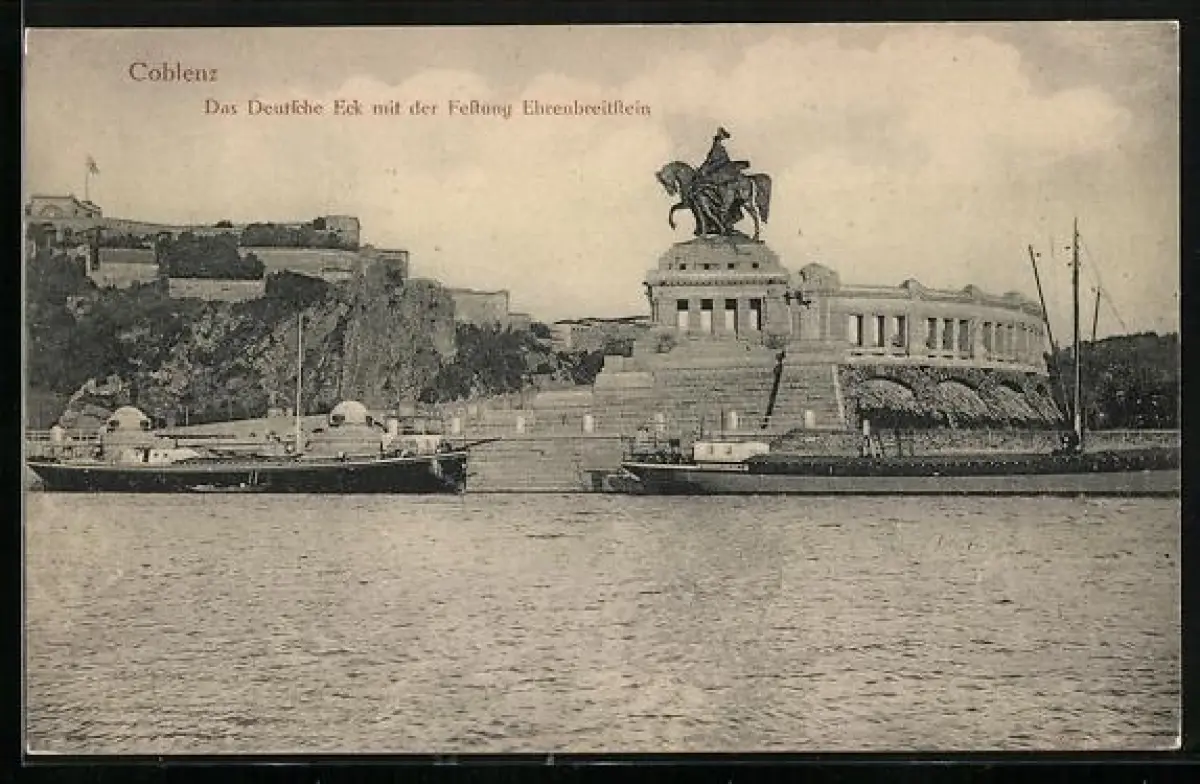 AK Coblenz, Das Deutsche Eck mit der Festung Ehrenbreitstein