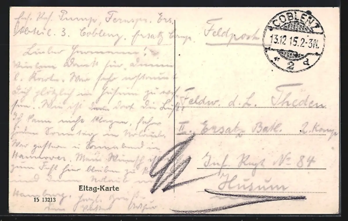 alte Ansichtskarte, gelaufen 1915, Stempelspur, guter Zustand