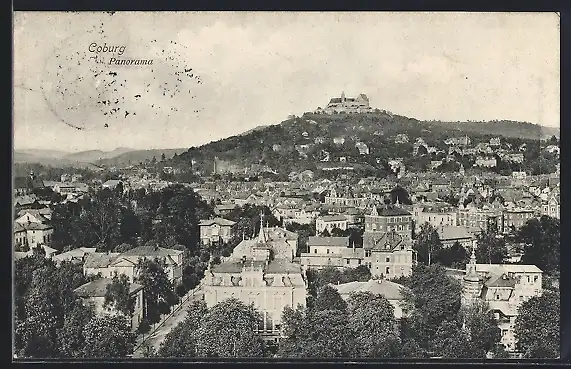 AK Coburg, Stadt-Panorama mit Veste