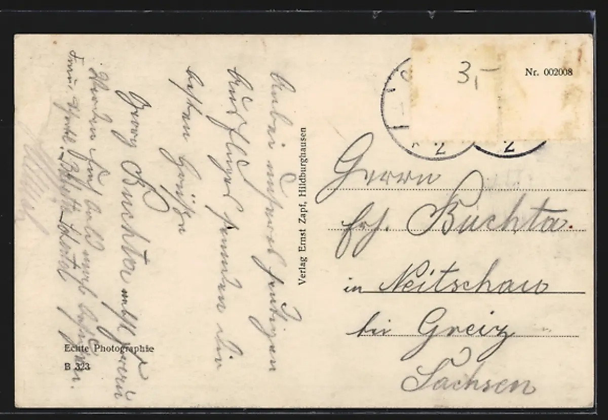 alte Ansichtskarte, gelaufen, Briefmarke entfernt, rückseitig Oberflächenschaden, guter Zustand