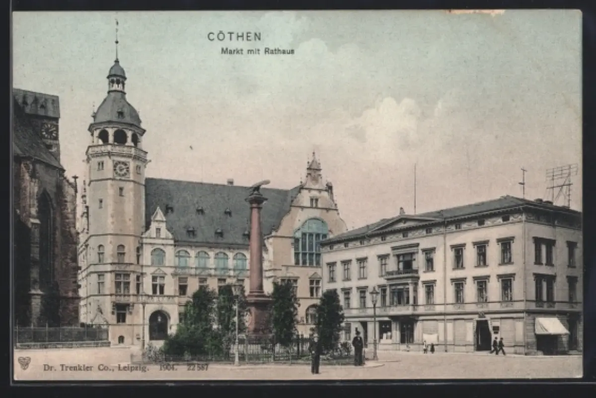 AK Cöthen, Markt mit Rathaus