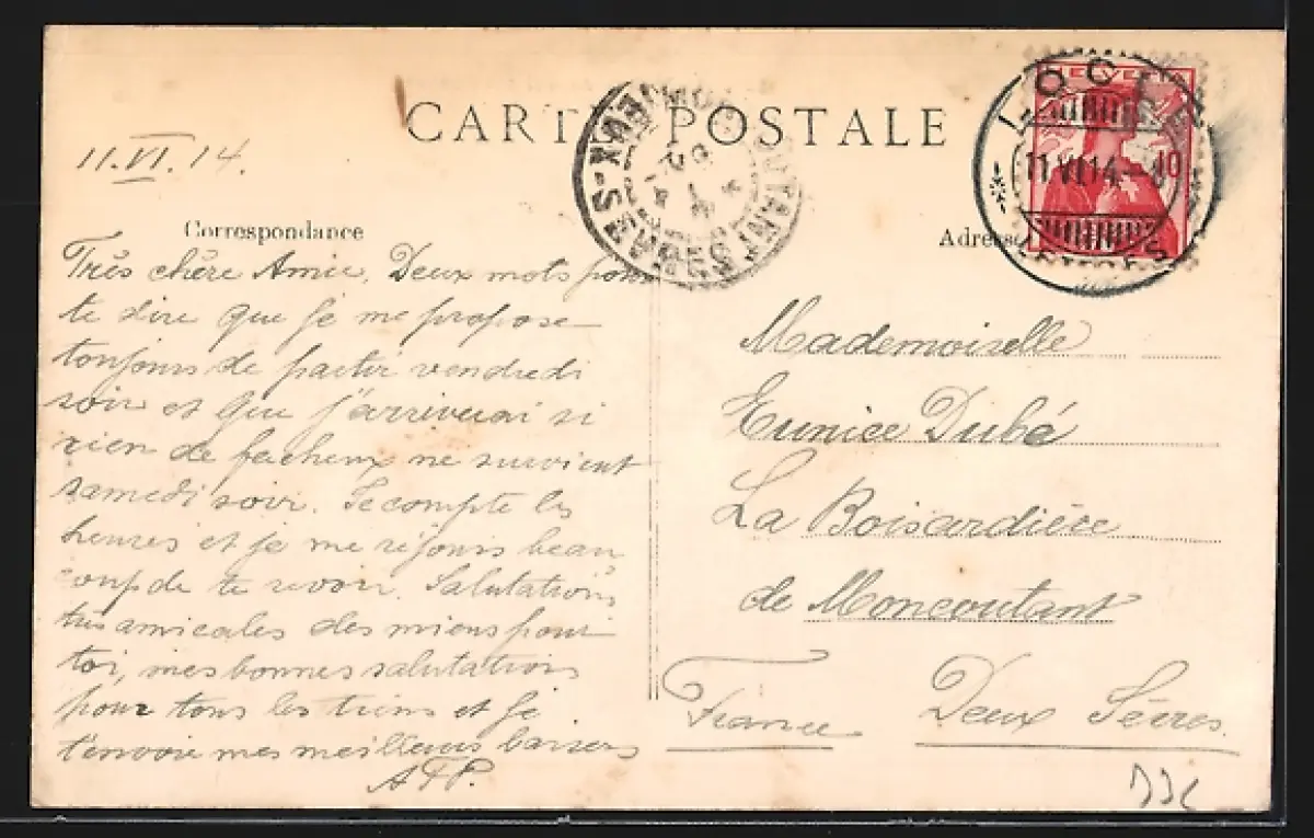 gelaufen 1914, Eckknick re. oben, guter Zustand
