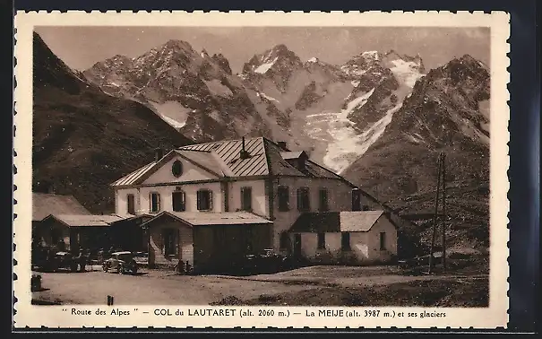 AK Col du Lautaret, vue sur l`Hôtel des Glaciers et la Meije avec ses glaciers