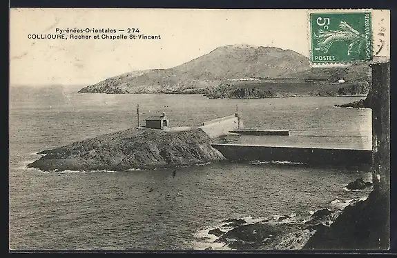 AK Collioure, Rocher et Chapelle St-Vincent