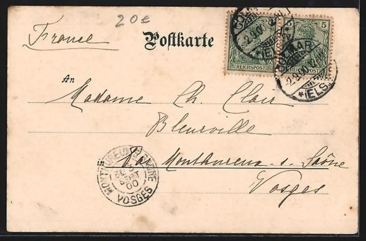 alte Ansichtskarte, gelaufen 1900, guter Zustand