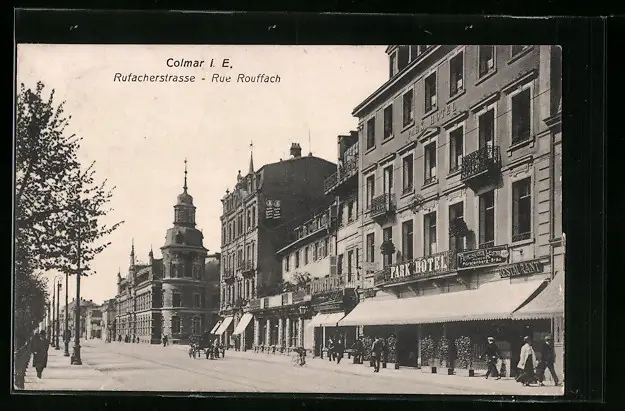 AK Colmar, Rufacherstrasse mit Park Hotel
