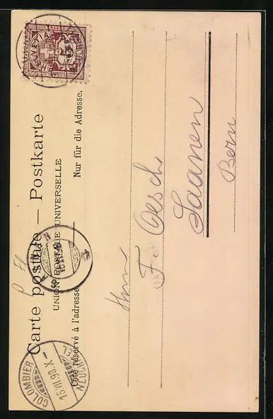 alte Ansichtskarte, gelaufen 1898, guter Zustand