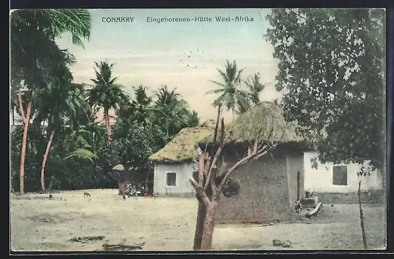 AK Conakry, Eingeborenen-Hütte mit Strohdach
