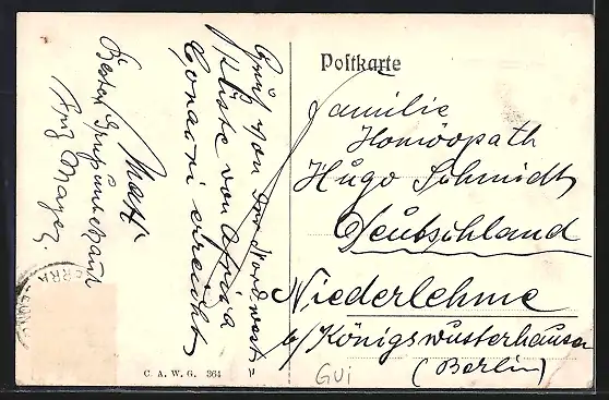 alte Ansichtskarte, gelaufen, Briefmarke entfernt, guter Zustand