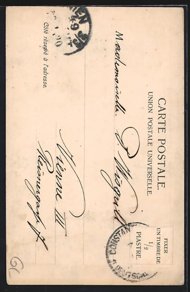 alte Ansichtskarte, gelaufen, Briefmarke entfernt, Stempelspur, guter Zustand