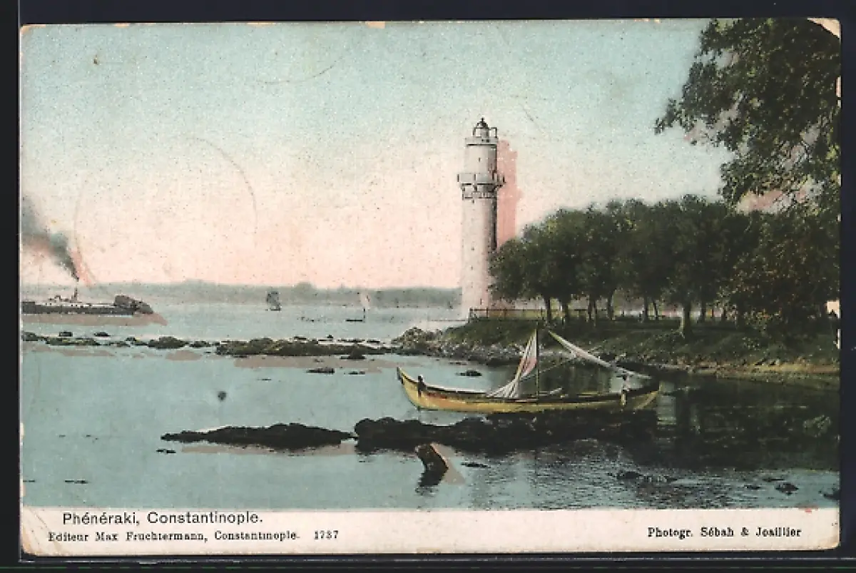 AK Constantinople, Phénéraki, Fischerboot mit Leuchtturm