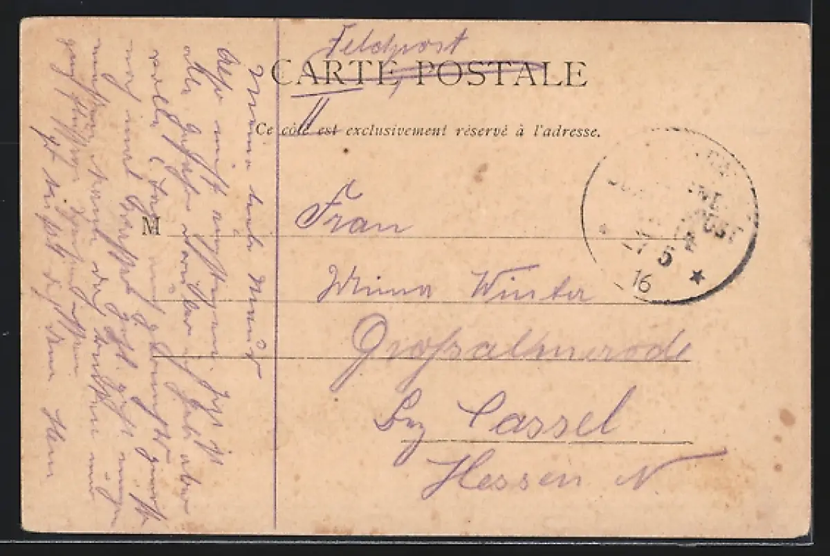 gelaufen 1916, Eckknicke li. unten, minimaler Einriss re. mittig, guter Zustand