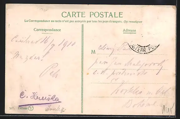 gelaufen 1910, Briefmarke entfernt, rückseitig Oberflächenschaden, Stempelspur, guter Zustand