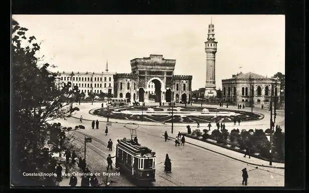 AK Constantinople, Vue Générale de Bayazid, Strassenbahn