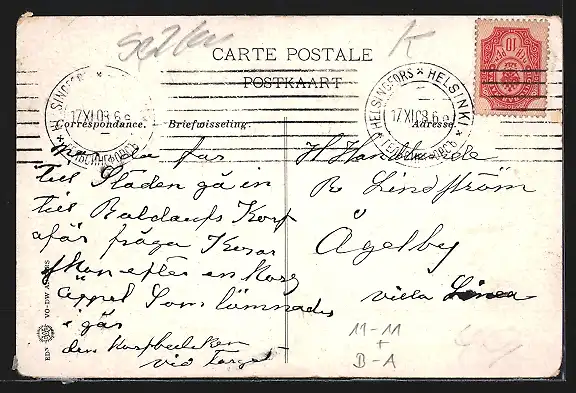 gelaufen 1908, Ecken bestoßen, guter Zustand