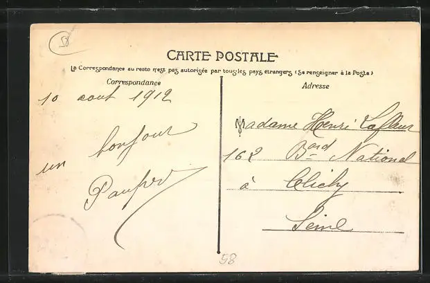 gelaufen 1912, leicht fleckig, sonst guter Zustand