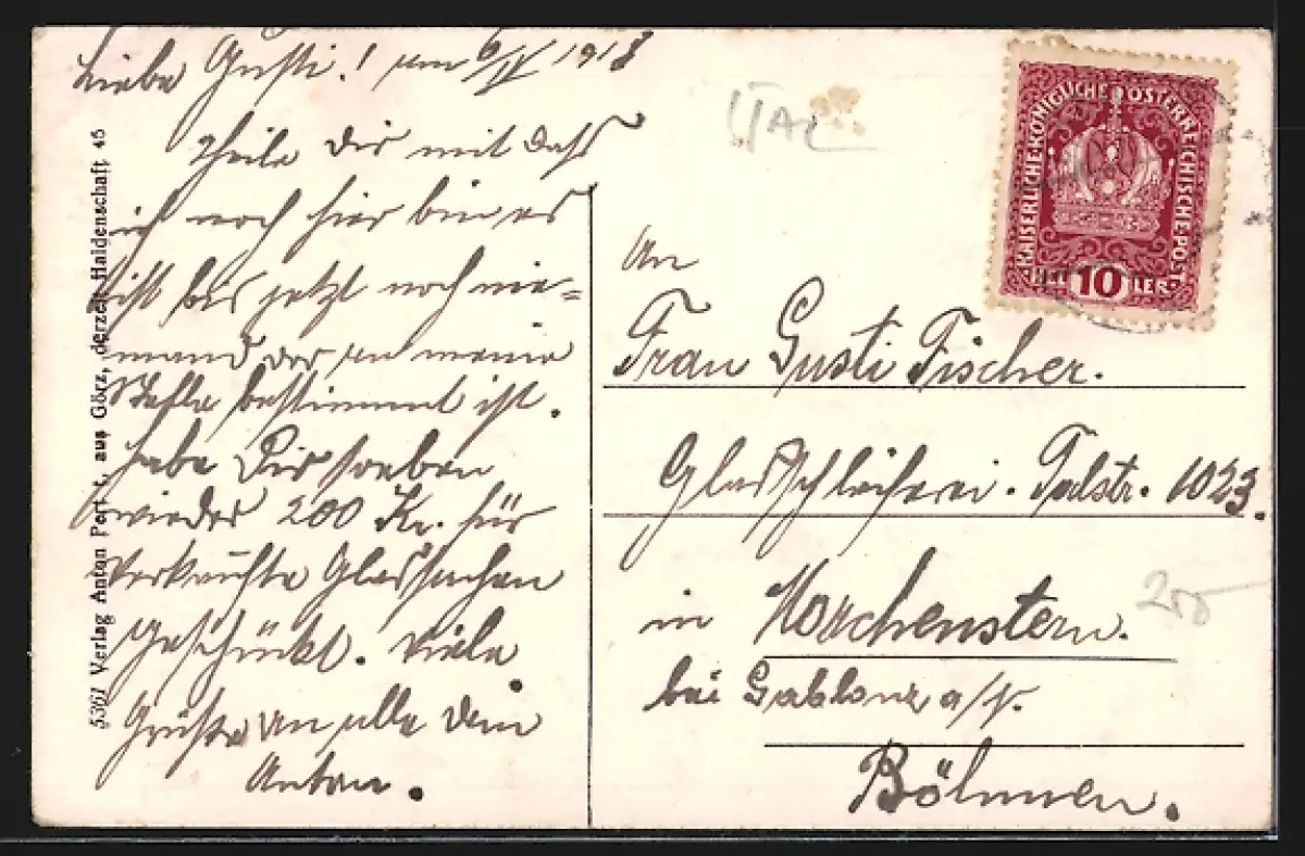 gelaufen 1918, guter Zustand
