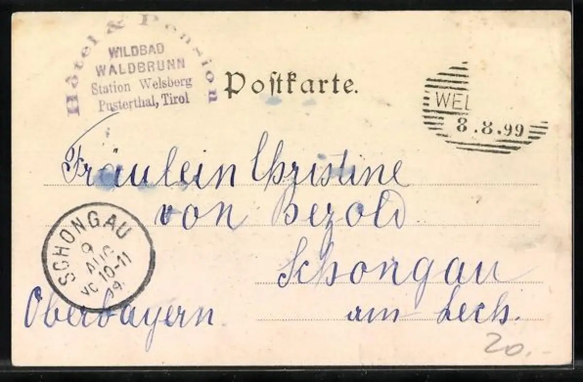 alte Ansichtskarte, gelaufen 1899, Eckknick re. oben, guter Zustand