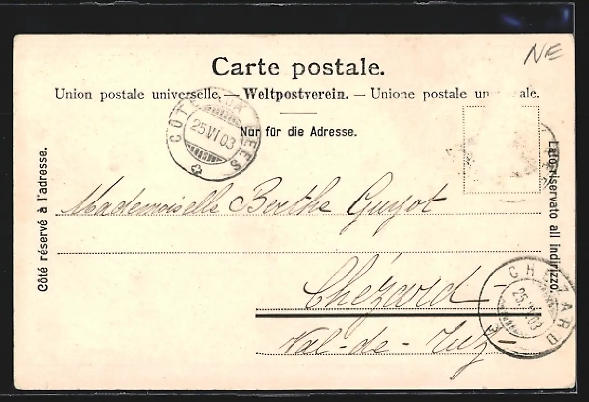 gelaufen 1903, Briefmarke entfernt, rückseitig Oberflächenschaden, guter Zustand