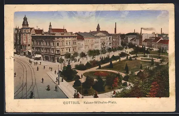 AK Cottbus, Kaiser-Wilhelm-Platz aus der Vogelschau