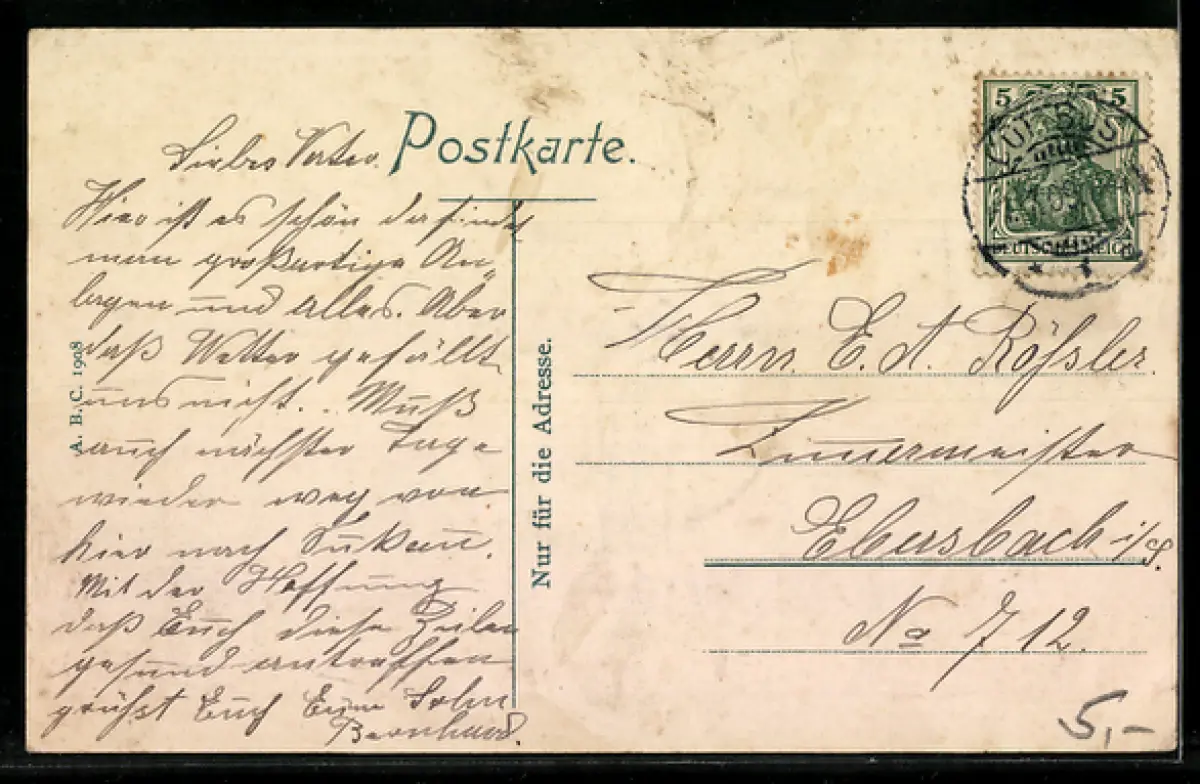 alte Ansichtskarte, gelaufen 1909, Stempelspur, guter Zustand