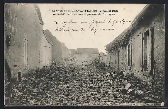 AK Cravant, Cyclone 3 Juillet 1905, Aspect d`une rue apres le passage de l`ouragan