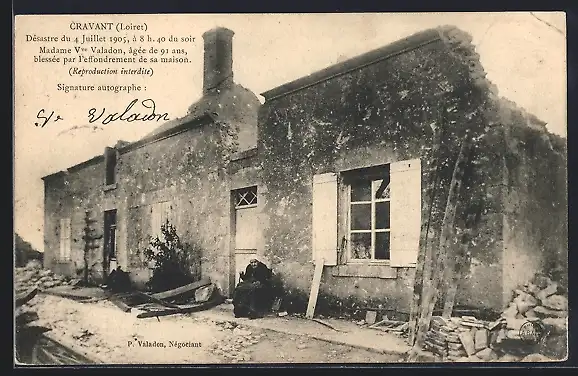 AK Cravant, Desastre 4 Juillet 1905, Madame Vve Valadon blessee par l`effondrement de sa maison