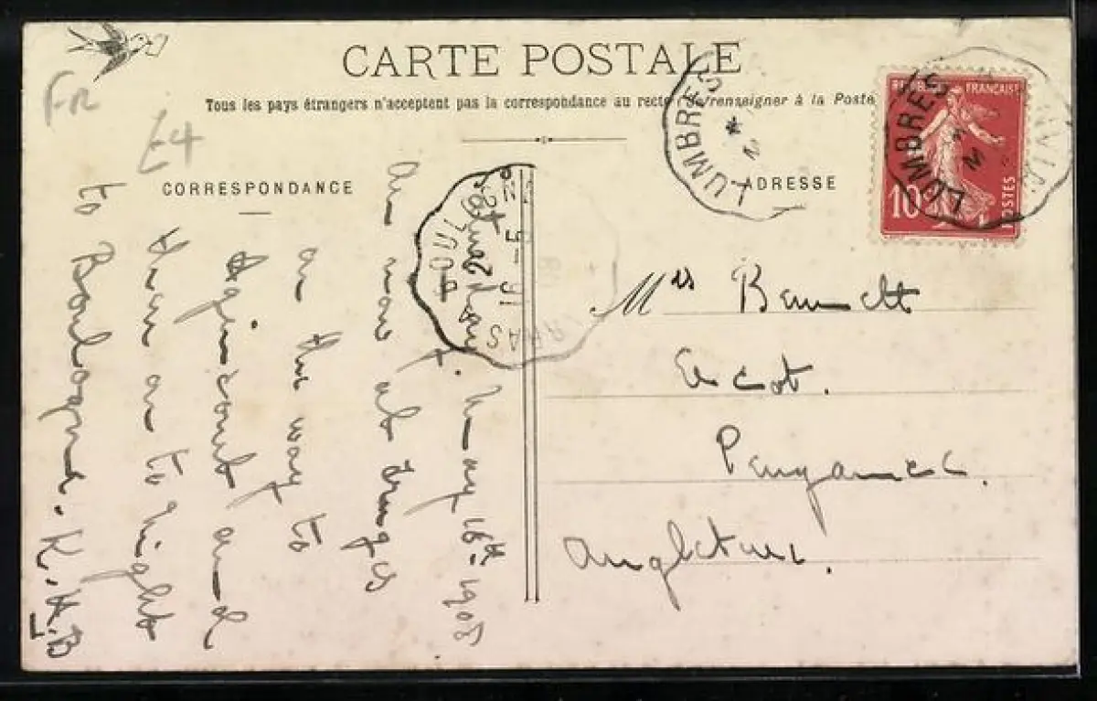 gelaufen 1908, minimaler Einriss li. oben, guter Zustand