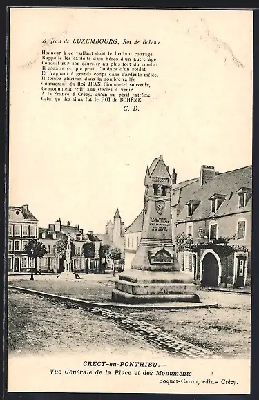 AK Crécy-en-Ponthieu, Vue générale de la place et des monuments