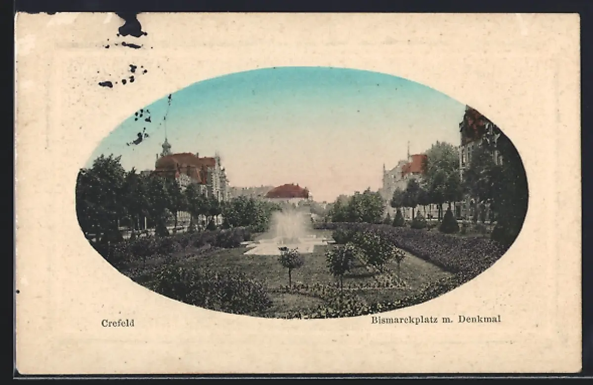 AK Crefeld, Bismarckplatz mit Denkmal