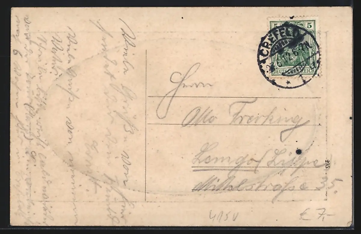 gelaufen 1912, Abriebspur li. oben, Stempelspur, guter Zustand