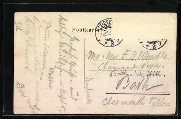 alte Ansichtskarte, gelaufen, Briefmarke entfernt, guter Zustand